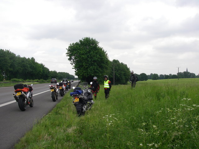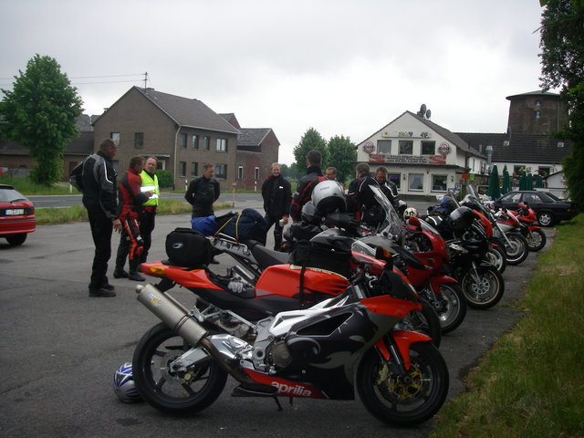 Naar De Eiffel.Door het kiezen voor de gehuurde 1200GS, mis ik nu dus mijn koffers. Daarom maar een rugzak achterop de motor gebonden met spinnen. Gelukkig heeft zo'n Adventure een bagagerekje. (zie foto van gisteren). Ook een navigatiesysteem ontbreekt, maar gelukkig kan ik mijn Garmin monteren met de autohouder en wat tie-wraps. Ik had nog een adaptor liggen voor de BMW-stekker. Het werkt dan verder prima en hij zit lekker stevig erop. ![]() Om 08:45 vertrokken naar de parkeerplaats bij het Van der Valk hotel. Om 09:00 vertrekt een gemengde ploeg van 10 motoren richting Eiffel. ![]() Het weer zit in ieder geval niet mee. Bij Zwolle zijn mijn handschoenen al doorweekt. In tegenstelling tot mijn Dakar, worden mijn handschoenen op deze Adventure wel drijfnat (aan de onderkant). Maar gelukkig is er handvatverwarming aanwezig. En tijdens een stop langs de A12 trek ik mijn waterdichte winterhandschoenen maar aan, want het water loopt nu ook bij mijn mouwen in. Het blijft verder de hele dag nat, met in de middag wat langere droge periodes. In Duitsland is het even weer tijd voor wat uitleg over rijtechniek door Albert de Jong van www.feelfreerides.nl : ![]() Ondanks wat pech onderweg (nee, niet de BMW) en wat fout rijden, komen we rond 19:30 bij het hotelletje aan. Veel bordjes met Zimmer frei. Je kan hier dus altijd terecht. Dan is het tijd om wat te verfrissen, eten en wat bier te drinken. |