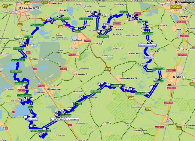 Rondje polder; 140Km.Kwam op het eerste deel van de route tot aan Oudehaske veel motoren tegen. Bleek dat de Friesche Motorclub hun "Friesland Tourtocht" aan het rijden was. Pech, had ik ook mee moeten doen. Volgende keer beter opletten. Anyway. Het was mooi weer en ik heb toch in m'n uppie wel een mooie route gereden: ![]() |