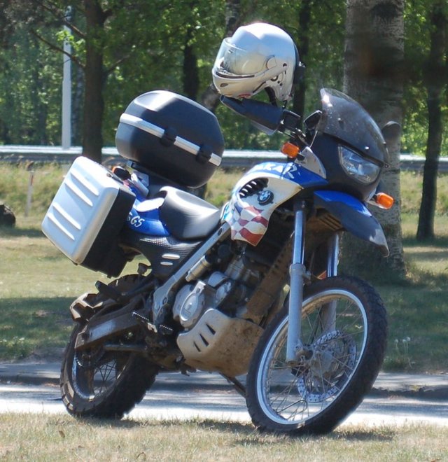 Km-stand: 19760 kmTrip: 80 km Vertrek: 10:00 Terug: 11:20 Het zonnetje is nergens te bekennen, en de regen evenmin. Dus tijd voor een regionaal ritje. Eens zien of er nog nieuwe weggetjes te vinden zijn. Als geen andere motor is mijn Dakar geschikt voor dit soort ritjes. En het lukt weer. Zelfs nog weer een paar kilometers onverhard gevonden. Mijn regionale topografische kaart wordt alsmaar gedetailleerder. Bovendien wordt het gebied groter. Handig bij het uitzetten van een toertochtje. Ik heb de software van mijn Zumo online laten updaten. En dat wreekt zich, want mijn bluetooth-apparaten zijn verdwenen... Maar gelukkig, ik heb de handleiding van mijn "Midland BT-intercom" headset nog en binnen 5 minuten is het weer in orde. De software van de Zumo is inderdaad ingrijpend gewijzigd. En niet overal ten goede... Voorheen werd mijn Midland automatisch gekoppeld, maar nu moet ik het elke keer handmatig doen. Vervelend. Wellicht is het ergens een instelling, maar ik heb het nog niet kunnen vinden. Jammer, mensen van Garmin ! Mijn nieuwe motorpak bevalt goed. Het zit als gegoten en vooral ook de protectors zijn niet irritant. (verbeterpunt 1). Met T-shirt in de jas gaat prima en het is niet koud. Ook kan ik de mouwen lekker om mijn (zomer)handschoenen snoeren en het tocht absoluut niet. (verbeterpunt 2). Rond de hals zit het ook lekker soepel en kan je het goed dicht snoeren. Toch blijft rond deze tijd van het jaar een halsdoek aanbevelenswaardig. Vooral op deze motor waar je toch volop in de wind zit. Ben 1 motor tegen gekomen. Een blauwe toermachine. |