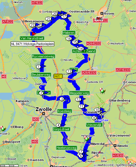 | 20:03 | 72,6 | in Heino rechtdoor verder op Zwolseweg Richting bij NL 8141 Heino | 0,4 |